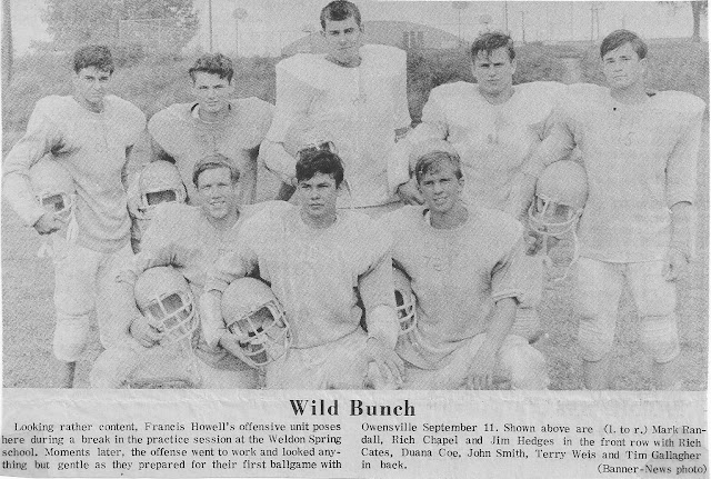 As it turned out, Francis Howell escaped with a 6-0 victory and caused Coach Stafford to say this morning, “We beat them everywhere but on the score. Our boys have been pretty down this year but I expect them to be up for tonight’s game.”